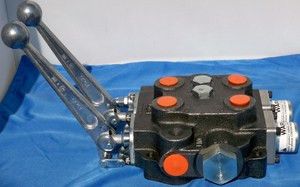 Cross 2 spool valve. Ports are 3/4" SAE in & out, work ports are 1/2" SAE. This valve has an adjustable relief valve set @ 2000psi and a flow capacity of 30GPM.
